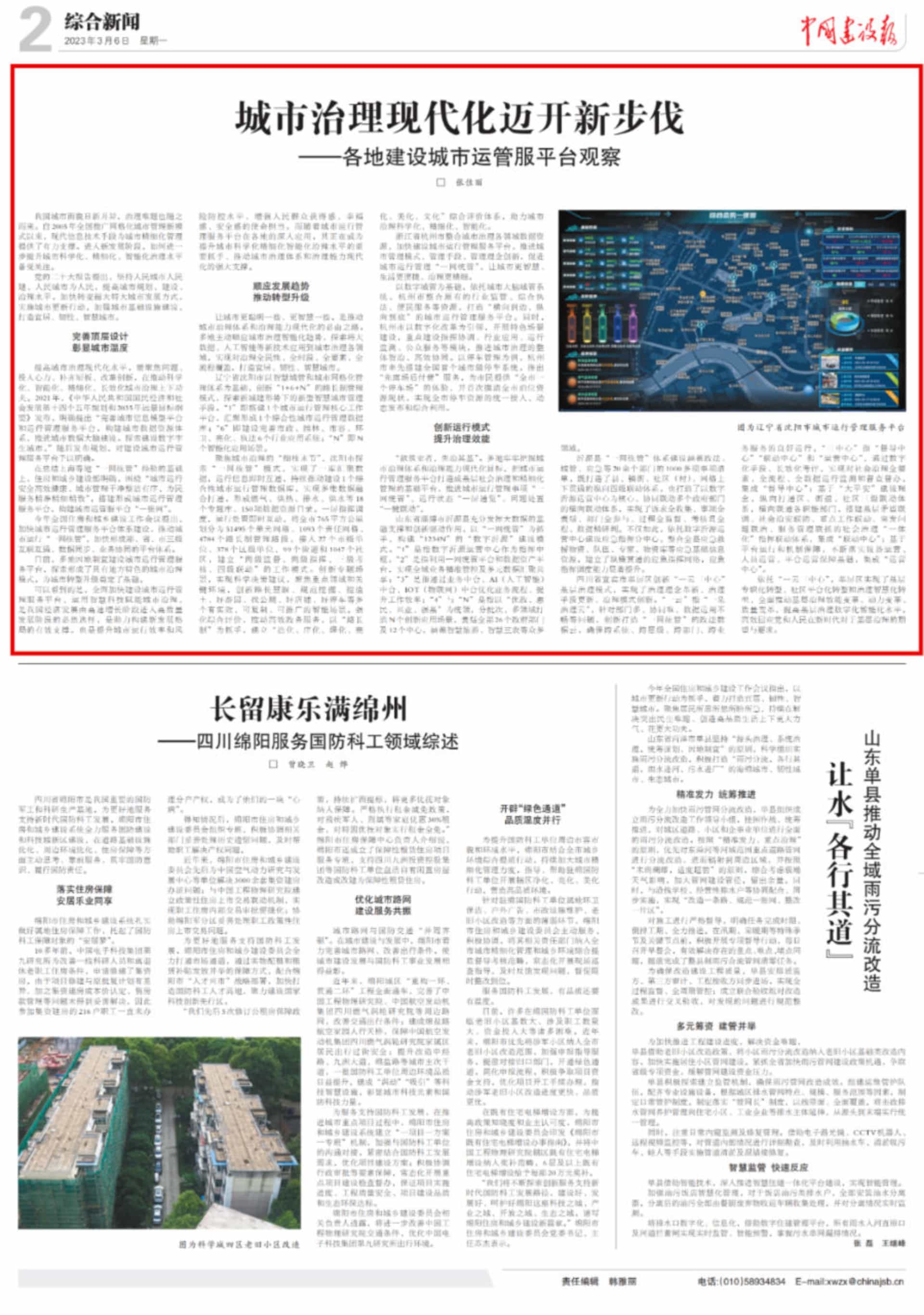 3月6日,中國建設報刊載文章《城市治理現代化邁開新步伐——各地建設城市運管服平臺觀察》,介紹了沈陽、杭州、...